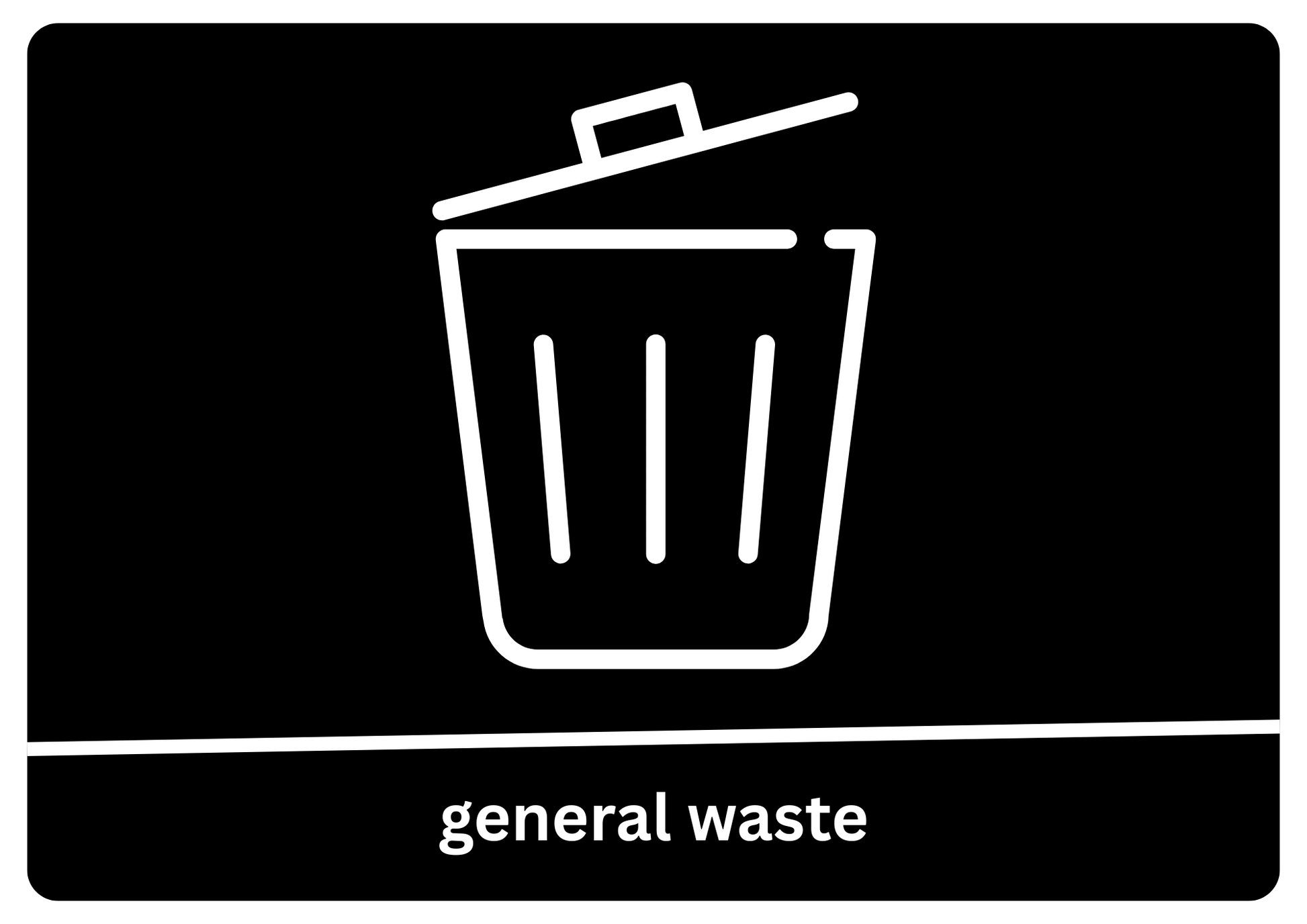 Wedi'i gynllunio ar gyfer gwelededd uchel, mae'r fformat mawr a'r testun cyferbyniol cryf yn gwneud y pwrpas yn amlwg ar yr olwg gyntaf. Yn berffaith ar gyfer mannau prysur fel swyddfeydd, ysgolion, ceginau, neu ardaloedd biniau a rennir, mae'n helpu i leihau halogiad wrth ailgylchu ac yn symleiddio arferion gwaredu.