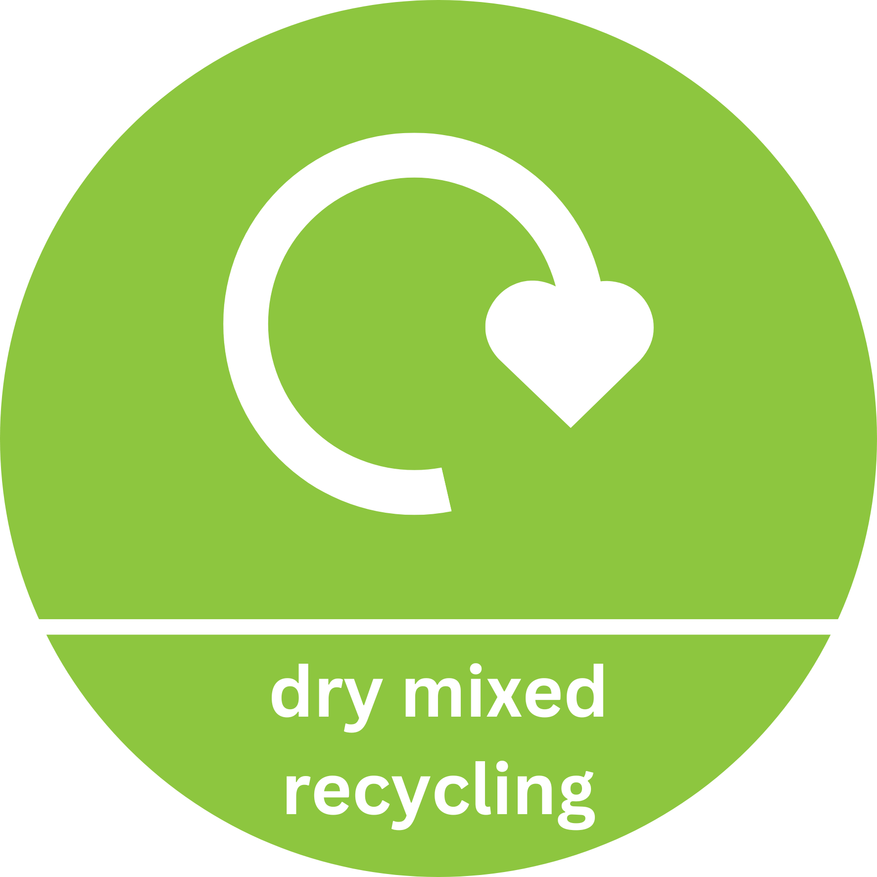 Circular and easy to identify, this durable Dry Mixed Recycling sticker is perfect for clearly marking recycling bins in homes, workplaces, schools, and public areas. Weather-resistant and simple to apply, it encourages proper recycling practices and supports a cleaner, greener environment.